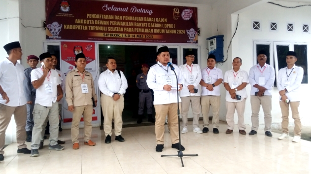 Partai berlambang garuda ini berangkat dari Kantor Gerindra menuju Kantor KPU Tapanuli Selatan di Desa Situmba, Kecamatan Sipirok, pada pukul 15.00 WIB, Sabtu (13/05/2023).