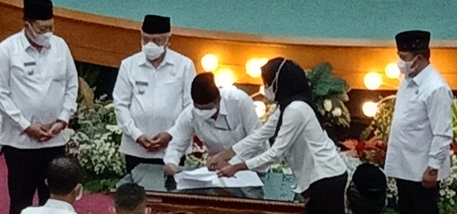 Bay foto Utsman : Bupati dan Ketua Dewan saat tanda tangan kesepakatan.
