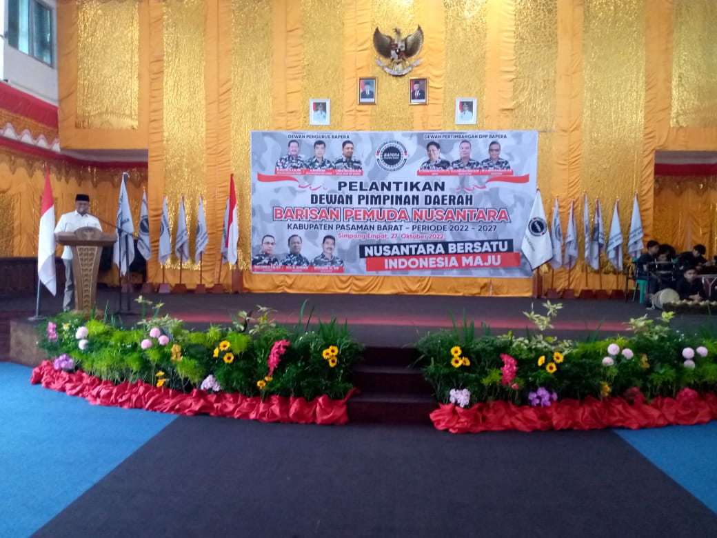 Barisan Pemuda Nusantara (Bapera) Kabupaten Pasaman Barat (Pasbar) resmi dilantik oleh sekjen Bapera Pusat pada Kamis (27/10) di Aula Kantor Bupati Pasbar. Sekretariat Jenderal (Sekjen) DPP Bapera, Mustofa M Radja melantik secara resmi Daliyus K sebagai Ketua DPD Bapera Kabupaten Pasaman Barat beserta pengurus.lain nya yang ada dari sebelas kecamatan di Pasaman barat.