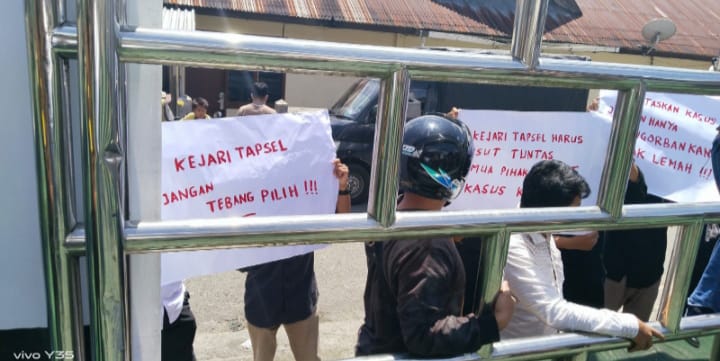 Kemudian massa juga menuntut Kejari Tapsel, tidak menjadi alat politik dari pihak manapun juga. Sehingga, Kejaksaan tetap tegar dan kuat, menindak penyimpangan dan dugaan korupsi yang terjadi di Kabupaten Tapsel. Pihaknya juga minta Komisi III DPR RI agar ikut memantau penengakan hukum di Tapsel maupun Sumatera Utara.