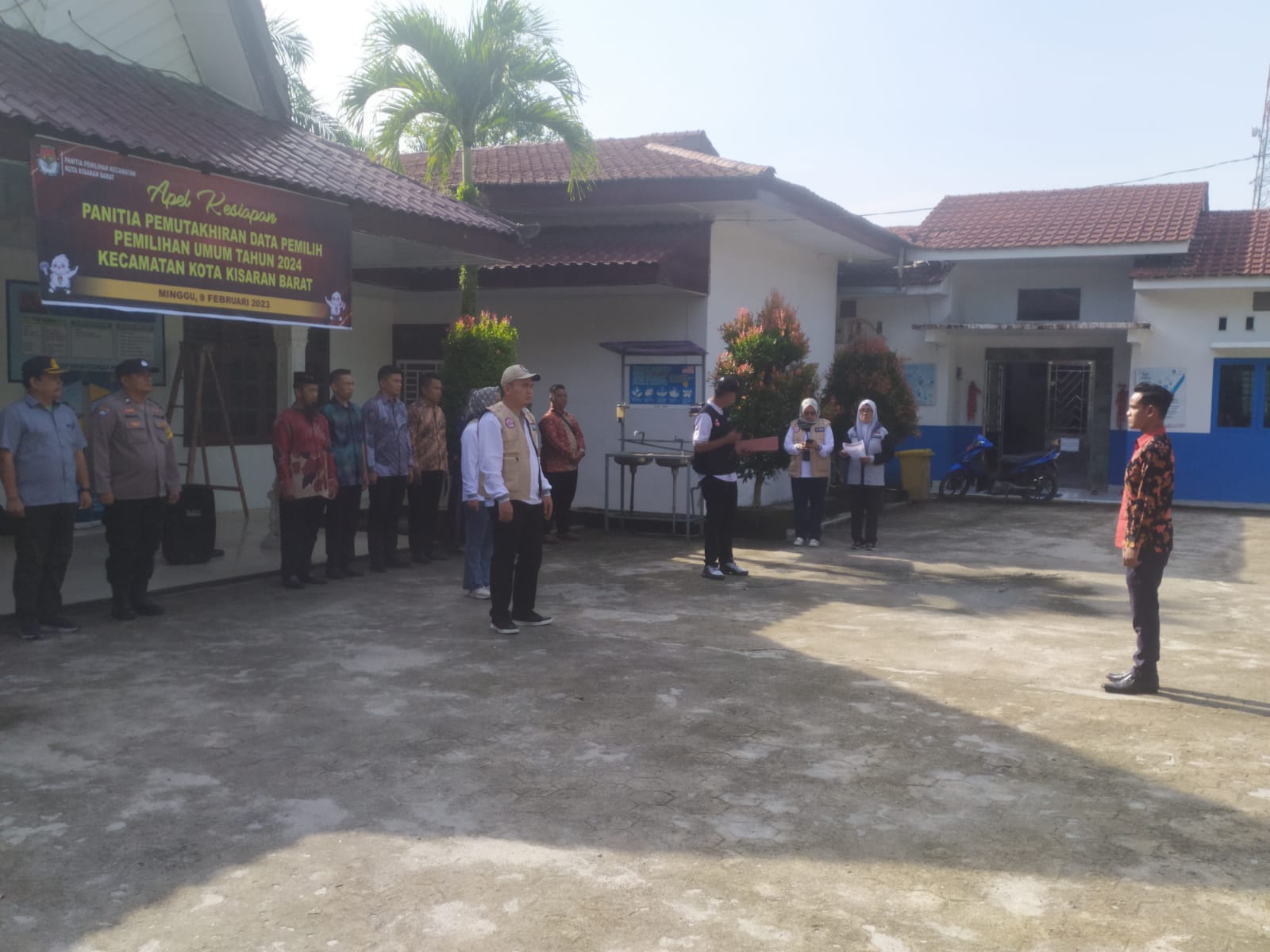 www.kontrasindependent.com-12 Februari 2023-Kabupaten Asahan-Bhabinkamtibmas Polsek Kota Kisaran Polres Asahan hari ini Minggu (12/02/23) melakukan pemantauan rapat koordinasi (rakor) di Halaman kantor camat kota kisaran barat Jalan Nusa Indah Kelurahan Sei Renggas Kecamatan kisaran Barat Kabupaten Asahan.