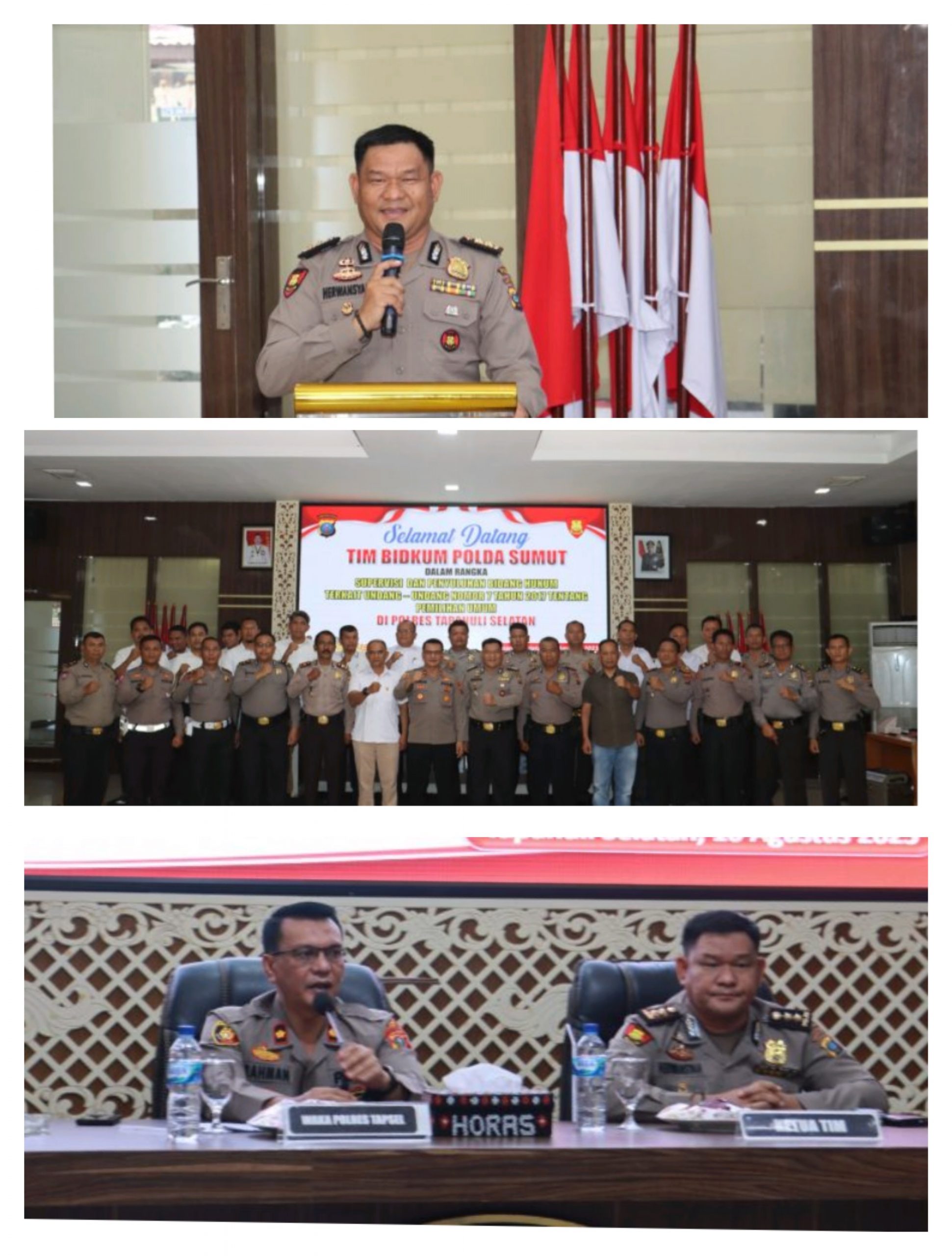 Kapolres Tapsel, AKBP Imam Zamroni, SIK, MH, diwakili Waka Polres, Kompol Rahman Takdir Harahap, SH, tampak menyambut Tim Bidkum Polda Sumut. Kabidkum Polda Sumut, Kombes Pol Andri Setiawan, SIK, MH, memberi arahan sekaligus membuka kegiatan itu lewat virtual zoom.