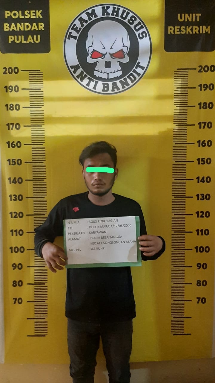 ARS ditangkap polisi setelah diamankan oleh petugas BKO Koban 126 dan BKO Polres Asahan, karena telah mencuri besi proyek pembangunan di PT Wasa Mitra.