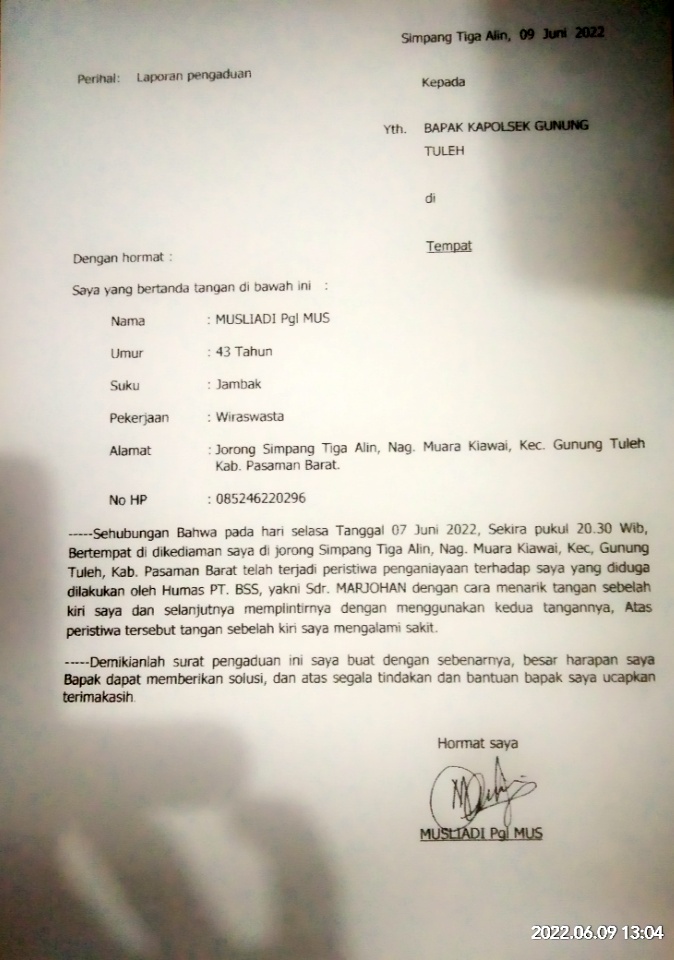 Perusahaan Ingkar Janji Secara Melawan Hukum Akan Dituntut Ninik Mamak Muaro Kiawai, Datuk Marajo Yasman Hendri