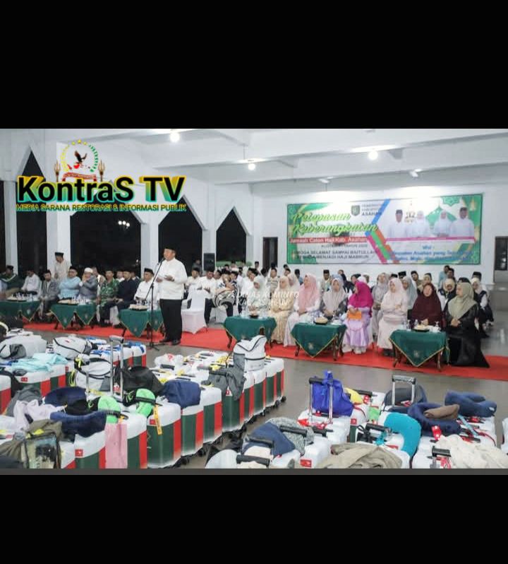 Asahan,WWW.kontrasindependent.com – Suasana khidmat dan penuh haru mewarnai pelepasan jamaah calon haji Kabupaten Asahan yang tergabung dalam Kloter 7 Tahun 1447 Hijriah/2026 Masehi. Kegiatan berlangsung di Pendopo Gedung Tahfiz Masjid Agung Ahmad Bakrie Kisaran pada Selasa dini hari sekira pukul 02.58 WIB, dipimpin langsung Bupati Asahan, Taufik Zainal Abidin, S.Sos., M.Si, Selasa (28/4/2026)
