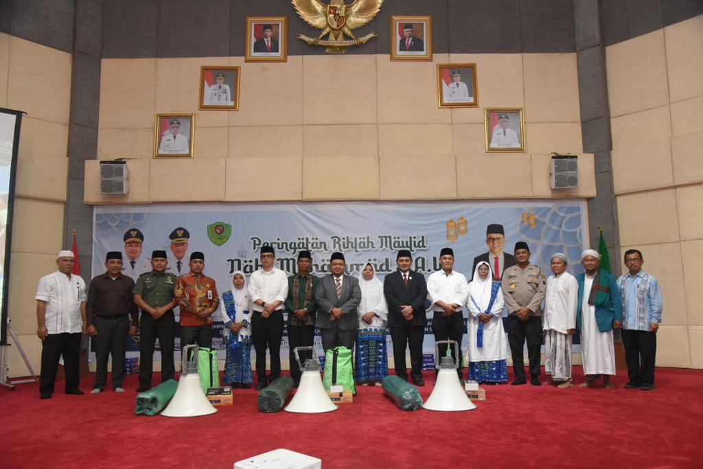“Berdasarkan nasehat ulama itulah, mari kita bergembira atas lahir dan diutusnya Nabi Muhammad SAW oleh Allah SWT, untuk mengangkat derajat umat Islam serta mengajari kita mana yang baik dan mana yang buruk agar kita selamat dunia dan akhirat,” ajak Bupati.