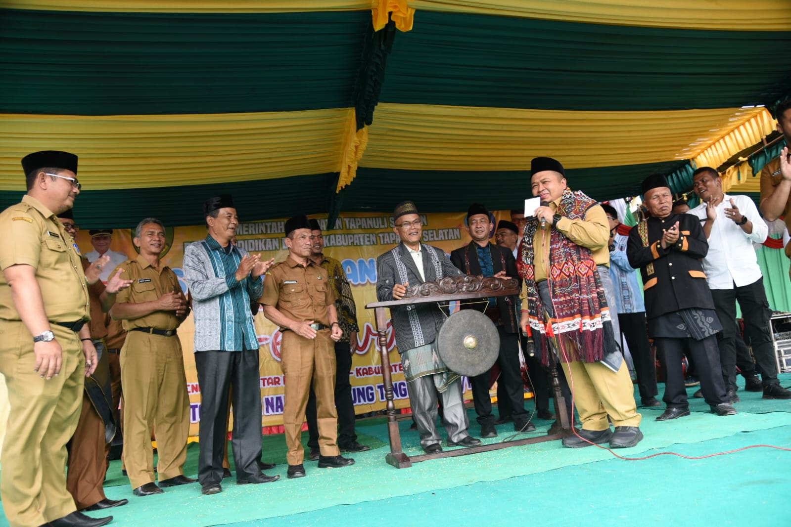 Kontras independen.com-Tapanuli Selatan, Dalam rangka menyambut Hari Jadi Tapanuli Selatan ke-72 tahun 2022, Bupati Dolly Pasaribu didampingi Ketua DPRD Tapsel, Ketua Forkala, Kadis Pendidikan, Camat Angkola Timur melakukan pemukulan gong tanda dimulainya Festival Seni Budaya Antar Pelajar Se-Tapsel di Lapangan SMPN 1 Pargarutan, Kecamatan Angkola Timur, pada Selasa (8/11).