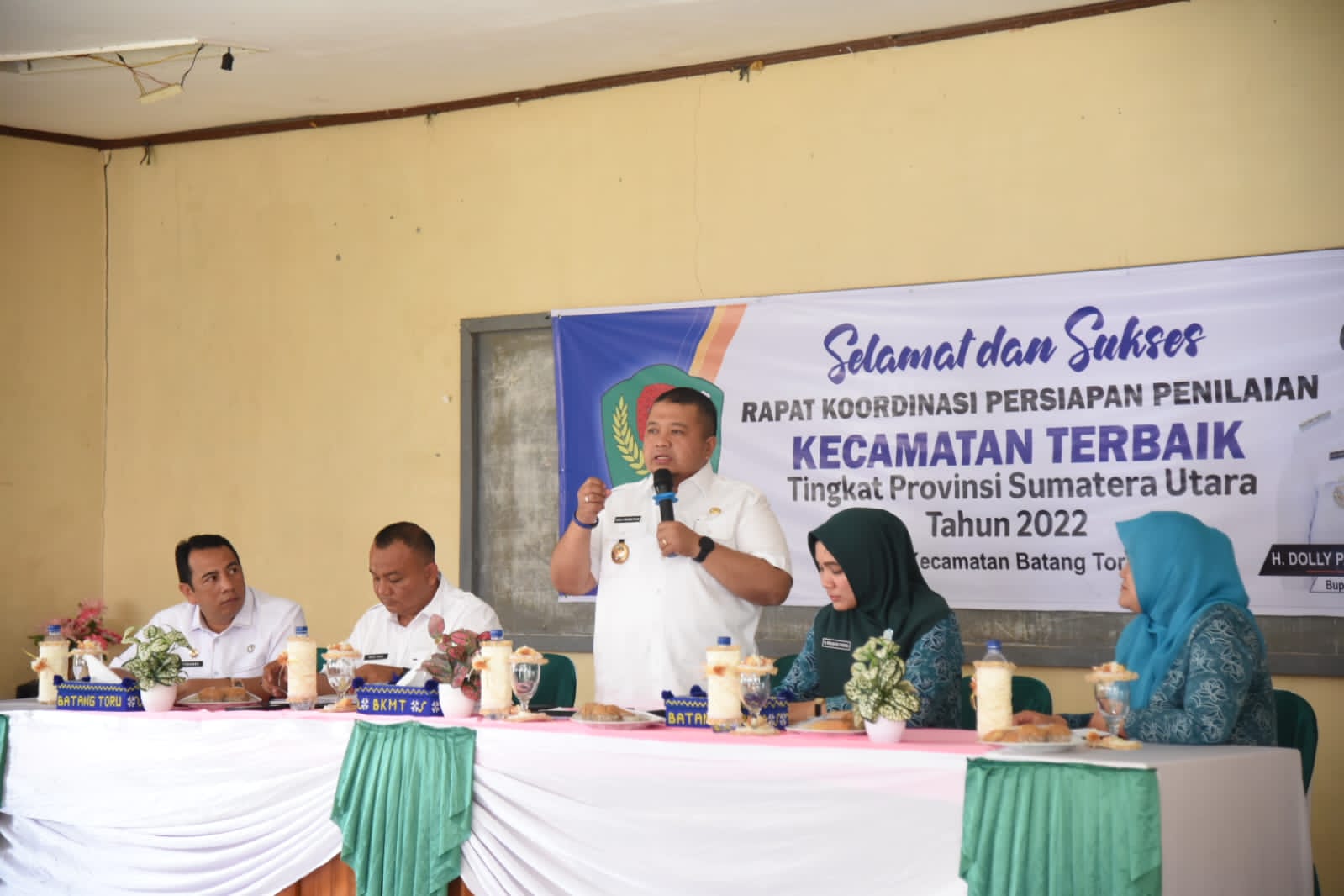 Terkait segala indikator yang menjadi penilaian provinsi nantinya agar dipersiapkan secara optimal, lakukan koordinasi antara dinas terkait ke pemerintah kecamatan dan selanjutnya ke semua kepala desa yang ada di Kecamatan Batang Toru ini,” tegas Dolly.