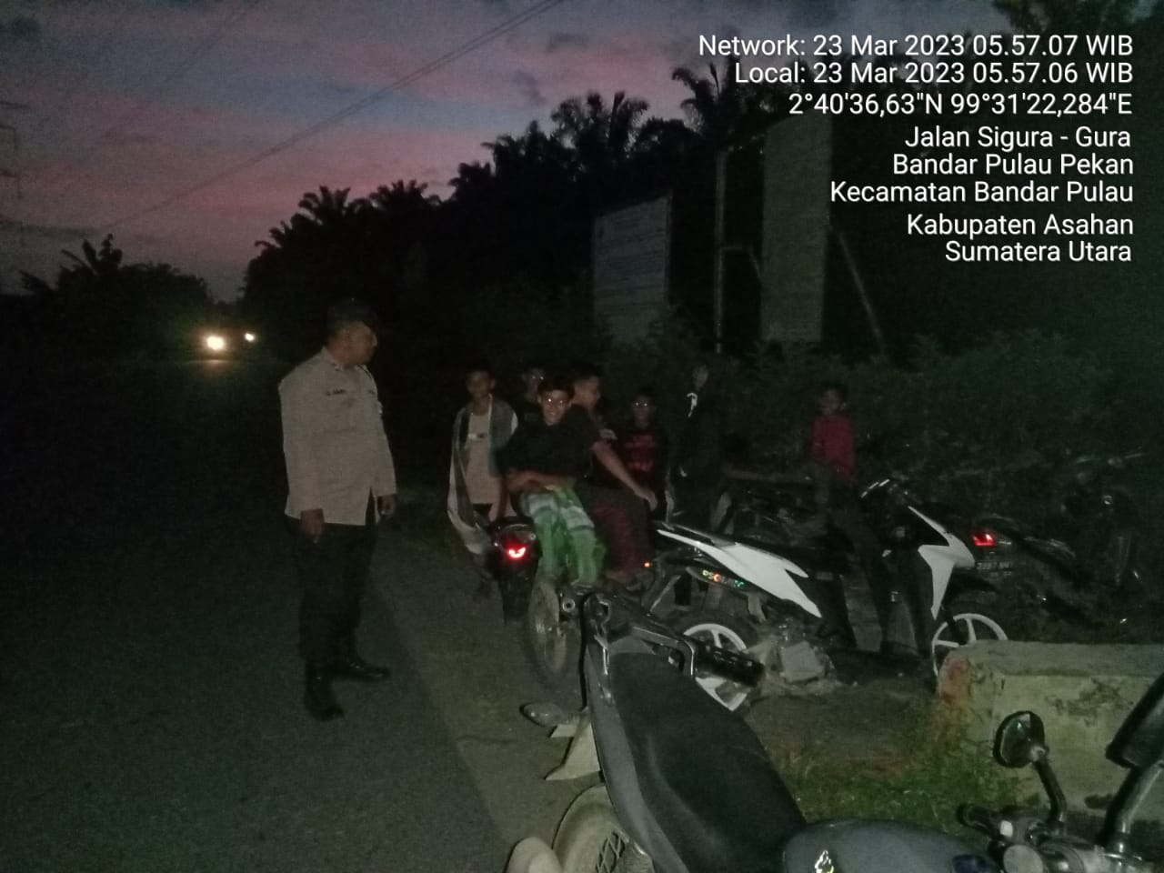 Www.kontrasindependent.com-Kabupaten Asahan, -Untuk menciptakan rasa aman nyaman lancar dan kondusif pada saat pelaksanaan sholat subuh, Polsek Bandar Pulau Polres Asahan melaksanakan patroli asmara subuh, Kamis (23/03/2022).