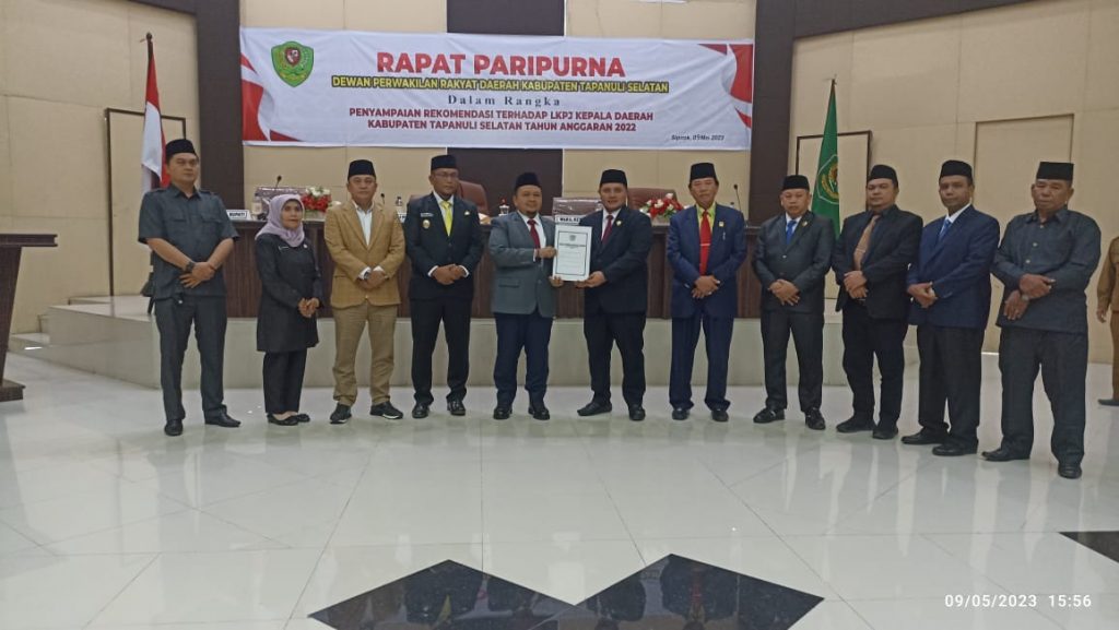 Www.kontrasindependent.com – Tapanuli Selatan – 09 Mei 2023 – Sumatera Utara – Dalam Rapat Paripurna Dewan Perwakilan Rakyat DPRD Kabupaten Tapanuli Selatan ,memberikan sejumlah rekomendasi terhadap laporan keterangan Pertangungjawaban (LKPJ ) Bupati Tapsel H. Dolly Putra Parlindungan Pasaribu Tahun Anggaran 2022.Hal itu untuk menjadi masukan arah kebijakan selanjutnya bagi Pemerintah Daerah agar lebih baik lagi di masa yang akan datang.selasa, (9-05-2023) .