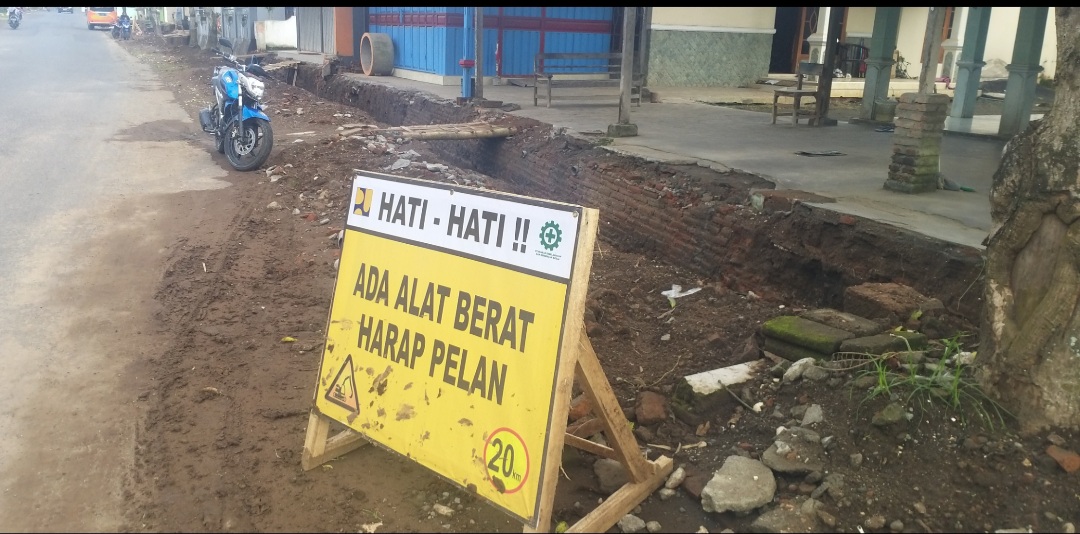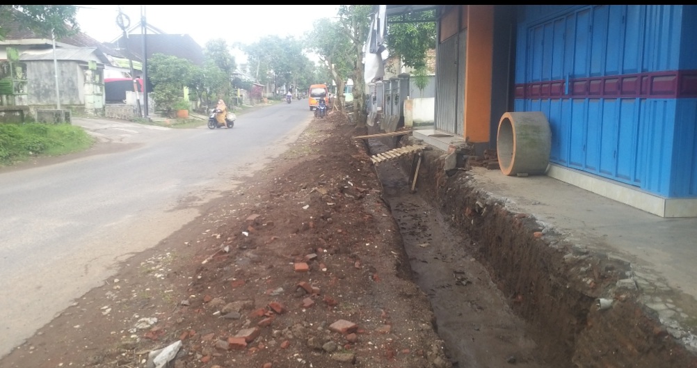 www.kontrasindependent.com Malang- Jalan Raya Protokol Kalipare sedang di Bangun Drainase oleh Dinas PU Bina Marga Kabupaten Malang melalui Pemerintah Desa.