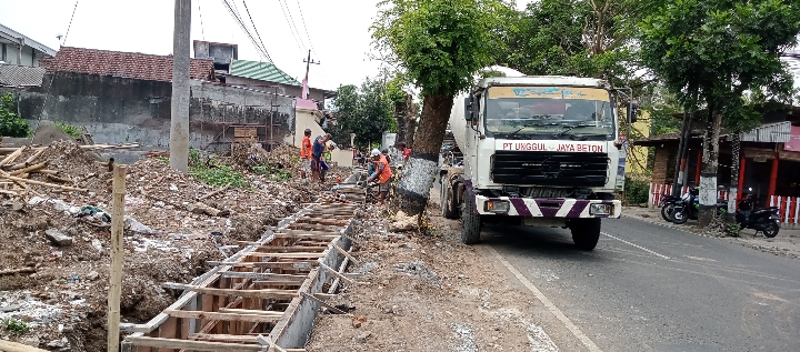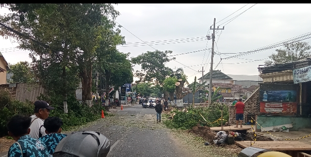 bencara tumbangnya pohon Dinas PU Bina Marga Kabupaten Malang melakukan pembangunan Saluran air dan pemotongan pohon di jalan raya Legok Sukoraharjo Kepanjen Kabupaten Malang berapa hari lalu.