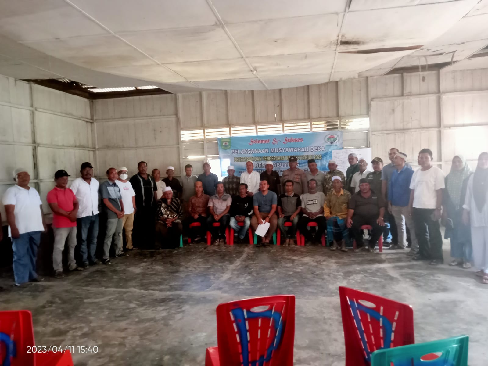 Kontrasindependen.com-Mandailing Natal, Pemerintah Desa Tabuyung, Kecamatan Muara Batang Gadis, Kabupaten Mandailing Natal, Sumatera Utara, menggelar musyawarah desa (musdes) di aula kantor kepala desa, Selasa (11/4/2023).