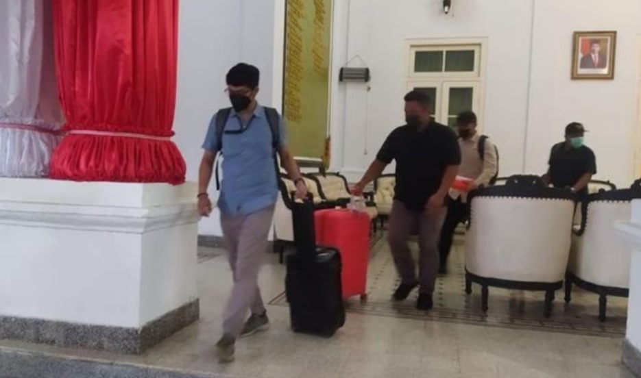 Penyidik KPK setelah menggeledah dari 4 lokasi tersebut terlihat membawa beberapa Koper yang tidak ada satupun Anggota dan Penyidik KPK memberikan keterangan.