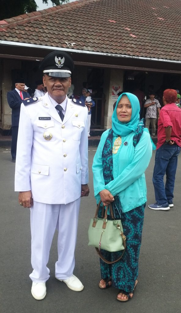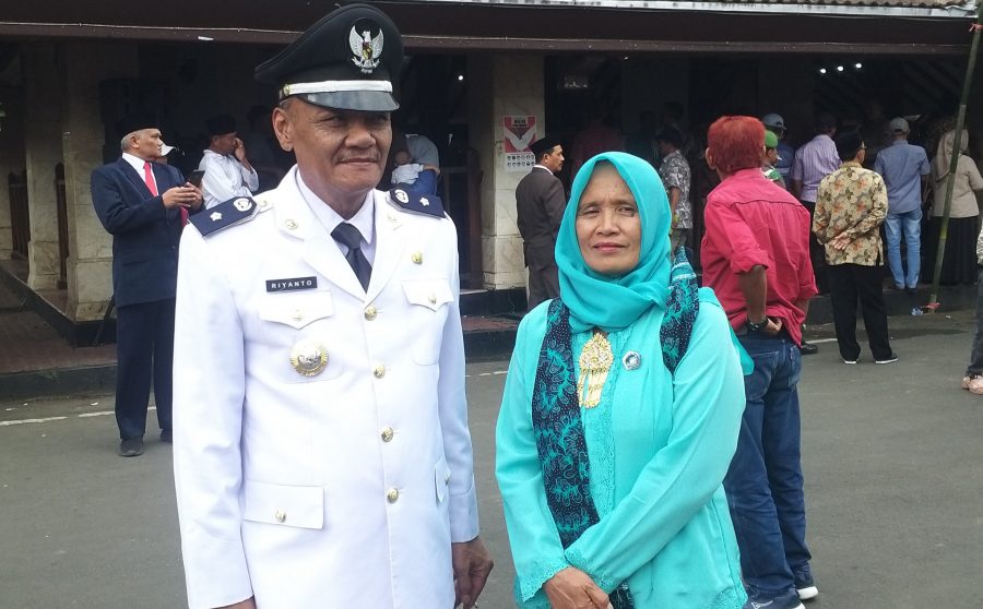 Ket foto : Kades Urek-urek H. Riyanto Bersama Istri Setelah di Lantik.