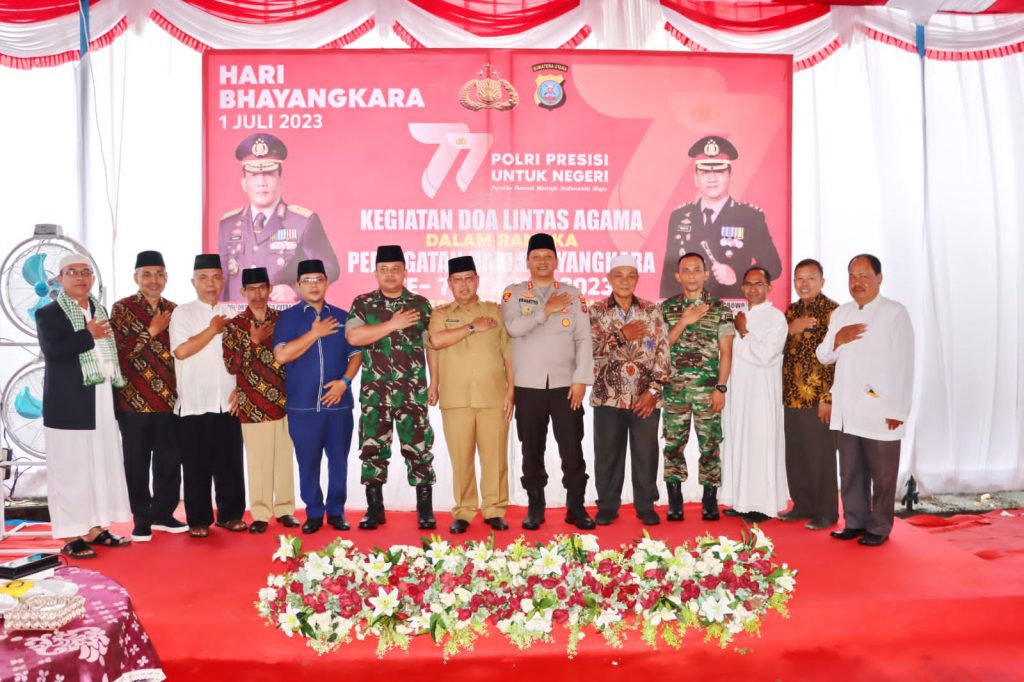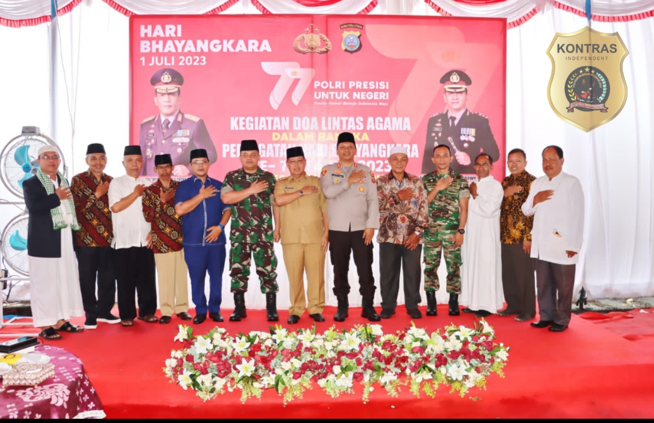 Www.kontrasindependent.com – Padangsidimpuan – 01 Juli 2023 – SUMATERA UTARA – Polres padangsidimpuan menggelar doa bersama lintas agama sebagai rangkaian dalam rangka Hari Bhayangkara ke-77 tanggal 1 Juli 2023 dengan tema “Polri Presisi untuk Negeri, Pemilu Damai untuk Indonesia Maju.”, Jumat (30/6/223) siang.