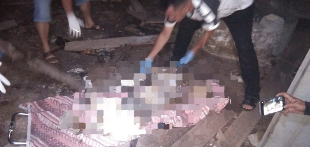 Sosok mayat tanpa identitas itu dengan posisi telentang dilantai I dan hanya mengenakan celana dalam, dimana sebagian tubuh sudah terlihat kerangka dan sebagian lainnya masih dibalut kulit mengering.