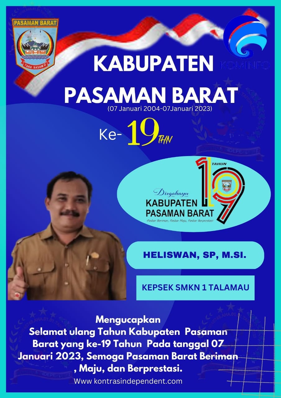 “Mengucapkan “selamat ulang Tahun Pasaman Barat yang ke-19. Pada tanggal 07 Januari 2023, semoga Pasaman Barat Maju, Beriman, dan Berprestasi.