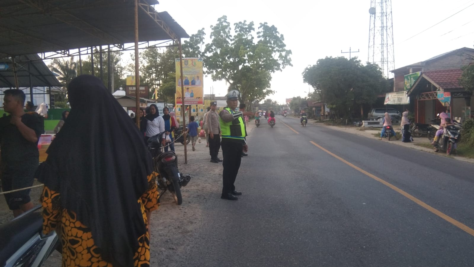 Www.kontrasindependent.com-kabupaten Asahan, -Personil Polsek Air Batu Polres Asahan melakukan pengaturan lalu lintas di Desa Sei Alim Ulu Kecamatan Air Batu Minggu (26/03/2023).