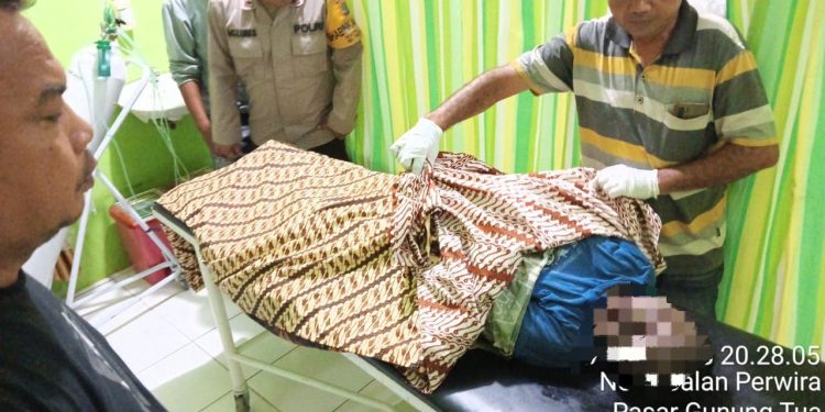 Badan jenazah sendiri, posisinya miring ke samping arah Kamar Mandi. Setelah melakukan olah TKP, personel menurunkan jenazah dan membawanya ke Puskesmas Gunung Tua guna pemeriksaan medis. Pihak keluarga, juga menyaksikan pemeriksaan medis terhadap jenazah.