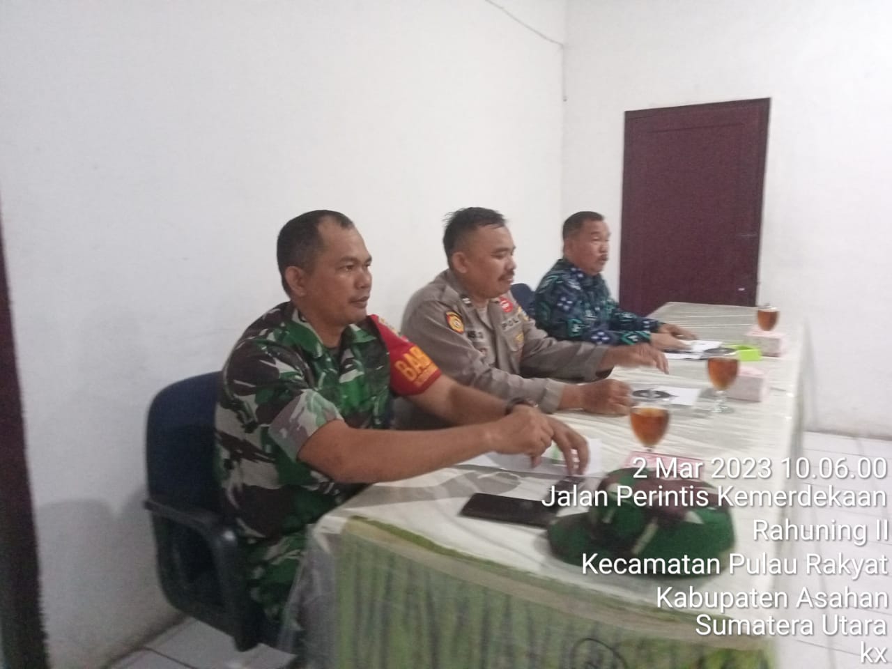 Kanit Binmas Polsek Pulau Raja Aiptu MS Siregar menghadiri Rapat Kordinasi penyuksesan dan Jadwal tahap penyelenggaraan Pemilu 2024 di kabupaten Asahan dan STANTING (gizi buruk) Kamis (02/03/2023).