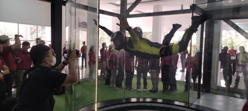 Setelah melakukan foto bersama, Pangdivif 2 Kostrad mengajak seluruh rombongan meninjau lokasi Wind Tunnel Kostrad 2 Skydiving Center.