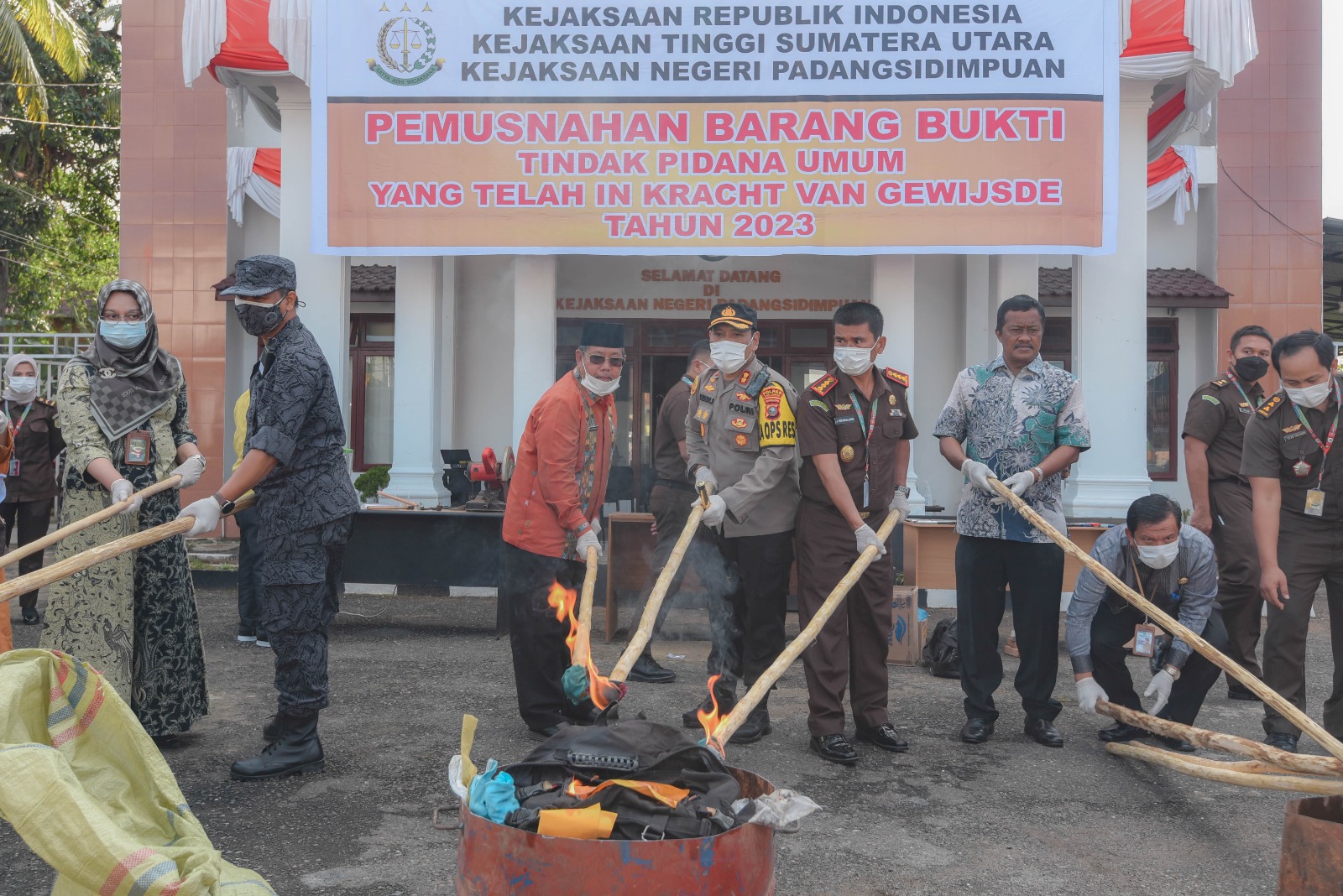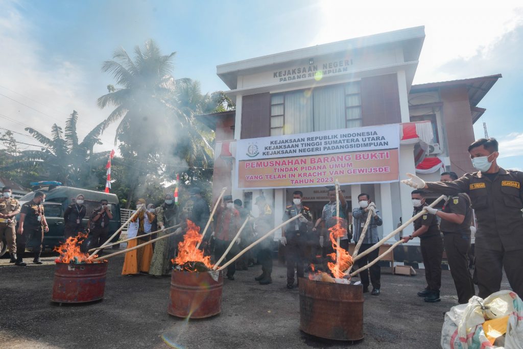 Www.kontrasindependent.com – SUMATERA UTARA – 13 Juli 2013 – PADANGSIDIMPUAN – Kapolres Padangsidimpuan AKBP Dudung Setyawan, SH, S.IK, MH Hadiri Kegiatan Pemusnahan barang bukti perkara pidana umum yang telah mempunyai kekuatan Hukum tetap bertempat di Halaman kantor Kejaksaan Negeri Kota Padangsidimpuan jalan serma Lian Kosong Kecamatan Padangsidimpuan Utara, pada hari kamis , (13 Juli 2023) pagi.