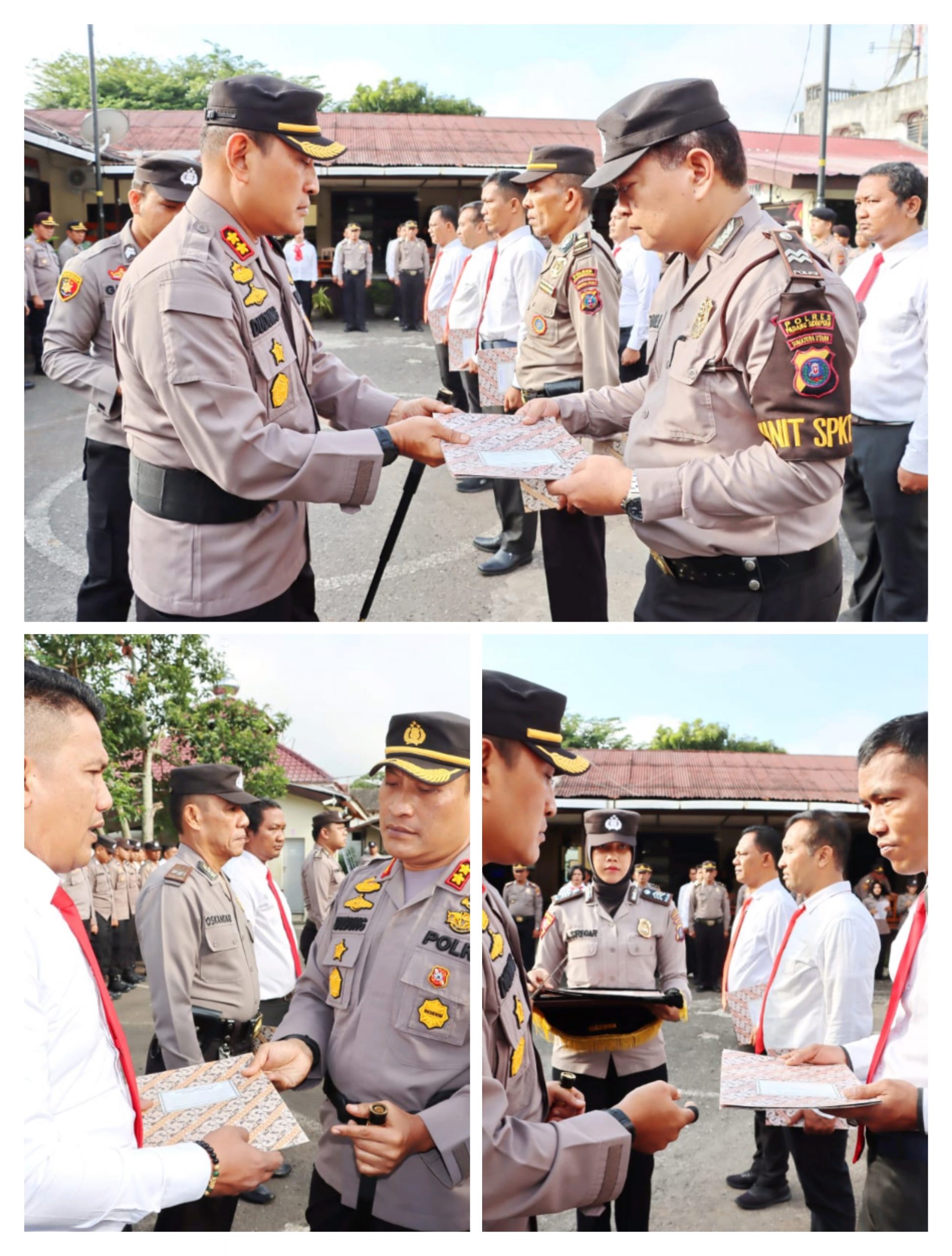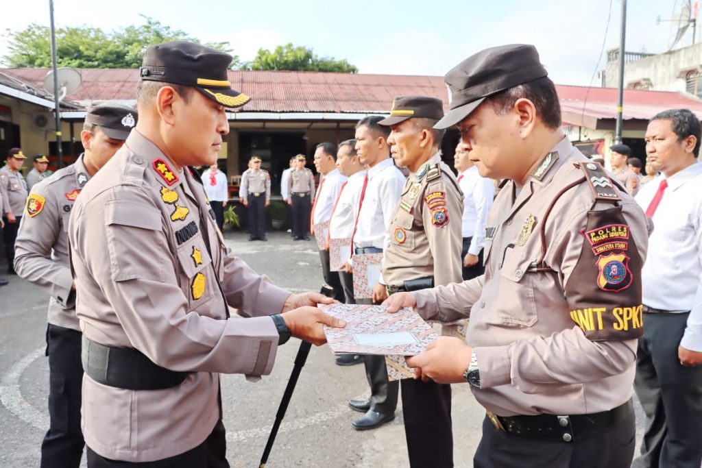 Para personel yang mendapatkan piagam penghargaan di Halaman Mako Polres Padangsidimpuan itu diganjar reward oleh Kapolres, lantaran berprestasi di bidang pemberantasan narkoba, pemeliharaan Kamtibmas, dan penyelamatan warga yang jatuh dari Ruko.