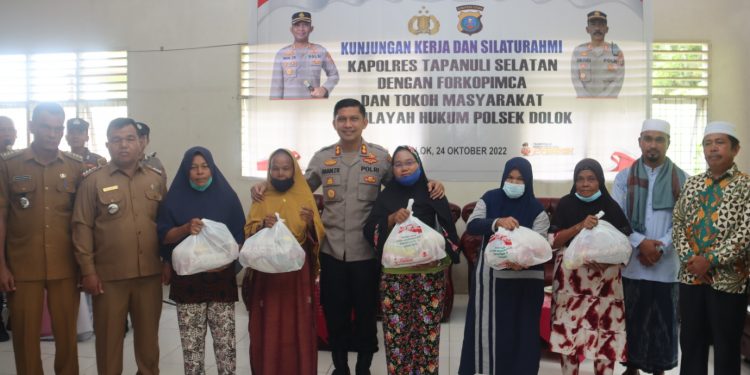 Kontras Independen.com-Padang Lawas Utara-Sosok Kapolres Tapanuli Selatan (Tapsel), AKBP Imam Zamroni, memang begitu lekat dengan kalangan keluarga Pra Sejahtera. Betapa tidak, disela kunjungan kerjanya (Kunker) ke Kantor Camat Dolok, Kabupaten Padang Lawas Utara (Paluta), orang nomor satu di Polres Tapsel itu sempat santuni puluhan keluarga Pra Sejahtera, Senin (24/10/2022) pagi.