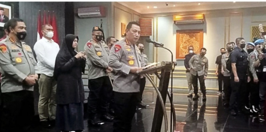 By foto Koin : Kapolri saat konferensi Pers di Mapolresta Malang 6/10/22.