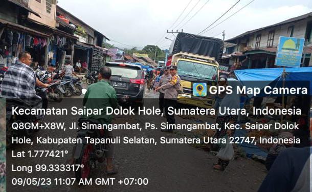 Kontrasindependent.com-Tapanuli Selatan, Agar tetap berjalan dengan aman, Kapolsek Saipar Dolok (SD) Hole, Iptu Amron Simanullang, SH, turun langsung saat proses pengamanan Pasar Simangambat, Selasa (9/5/2023) pagi.