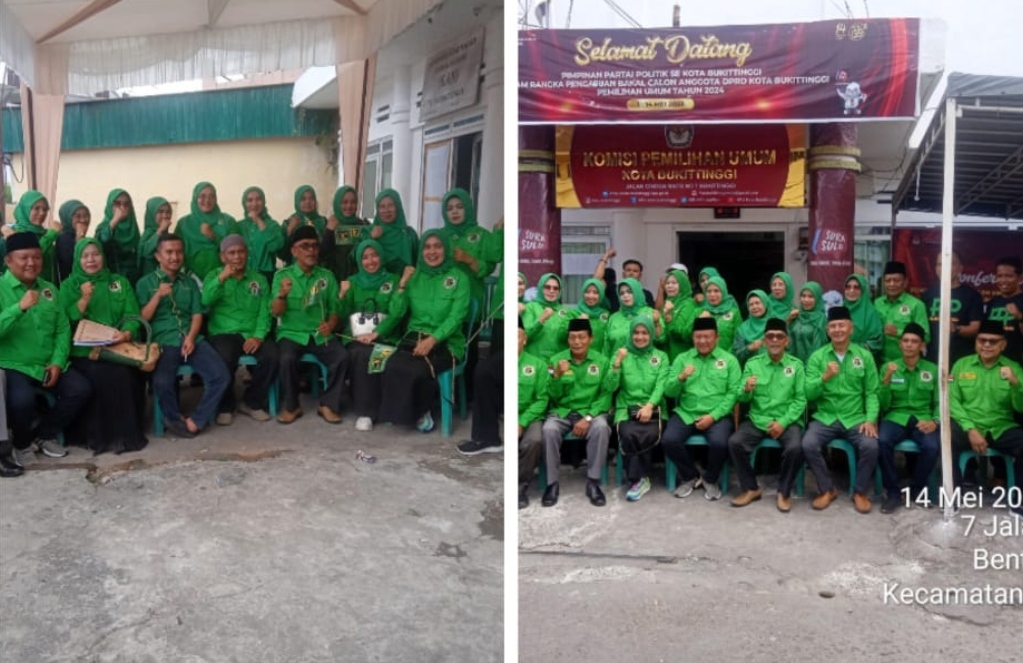 Wwww.kontraSindependent.com – Bukittinggi – 14 Mei 202 – Sumatera Barat – Dedi Fatria Ketua DPC PPP Kotpa Bukittinggi didampingi oleh Sekretarisnya Dewi Anggraini untuk memimpin rombongan  bakal calon anggota legislatif(Bacaleg) praksi PPP Kota Bukittinggi ke Komisi Pemilihan Umum(KPU).