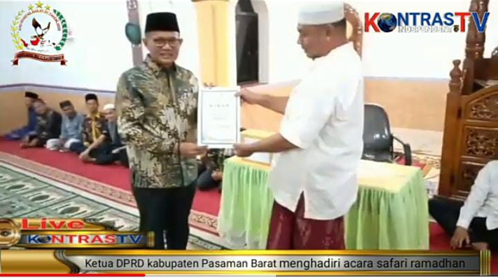 Publisher:Riyan FandiKetua DPRD Pasaman Barat Menghadiri Acara Safari Ramadhan Untuk menjalin hubungan silaturahmi serta menampung aspirasi masyarakat, Erianto Ketua DPRD Kabupaten Pasaman Barat didampingi Wakil ketua DPRD Kabupaten Pasaman Barat, Endra yama putra Daerah dalam Acara Safari Ramadhan di masjid Nurul Hag di Jorong Pasa Lamo Minggu 17 /04 di Pasar Sasak, bersama tim melakukan acara Safari Ramadhan di Masjid Nurul Hag Nagari Sasak Kecamatan Sasak Ranah Pesisir Minggu (17/04).. Erianto SE Ketua DPRD Kabupaten Pasaman Barat bersilaturahmi dengan masyarakat, kedatangannya bersama tim juga untuk mensosialisasikan dan mengajak masyarakat untuk mensukseskan visi misi program unggulan di pertanian dan perkebunan, serta perikanan dan lain sebagainya untuk membuat proposal kelompok tani. Selain itu juga Tim safari Ramadhan juga menyarankan bantuan kan Rp 5.000.000,00(Lima Puluh Juta Rupiah), untuk pembangunan masjid Raya Nurul Hag yang di serah kan lansung secara simbolis oleh , Erianto SE Ketua DPRD Kabupaten Pasaman Barat ,kepada Jalisman pengurus masjid Nurul Hag di Jorong Pasa Lamo Nagari Sasak Kecamatan Sasak Ranah pesisir, Kabupaten Pasaman Barat . Tim Safari Ramadhan juga di dampingi oleh , Edison zalmi S ,STP MM, Staf Ahli bidang Pemerintahan, Drs Rafaan MM ,Asisten III , Decki Harmiko Saputra SH Kadis Parawisata , Hendri Wijaya Kasat Pol PP, Pasaman Barat, Drs.H.Suratman Wakil ketua BAZNAS, Pasaman Barat, dan Anas Malik Spdi dari petugas administrasi. Amad Romi Media roran Padang.Ahmad Romi media koran Haluan dan juga di hadiri, Endra Yama Putra SPI Wakil ketua DPRD Kabupaten Pasaman Barat juga sebagai putra Daerah Nagari Sasak, dan tokoh masyarakat Lainnya pada acara tersebut. Pengurus masjid Nurul Hag Pasa Lamo Nagari Sasak , Jalisman mengucapkan terima kasih kepada seluruh tim Safari Ramadhan Kabupaten Pasaman Barat Yang Di dampingi awak Media Televisi dan Koran.Sehingga informasi pelaksanaan ke giatan di bulan Ramadhan dapat diketahui masyarakat umat Islam secara umum dan terbuka untuk berlomba-lomba untuk kebaikan di bulan suci Ramadhan ini.Ungkap Yulisman .(Burhan)