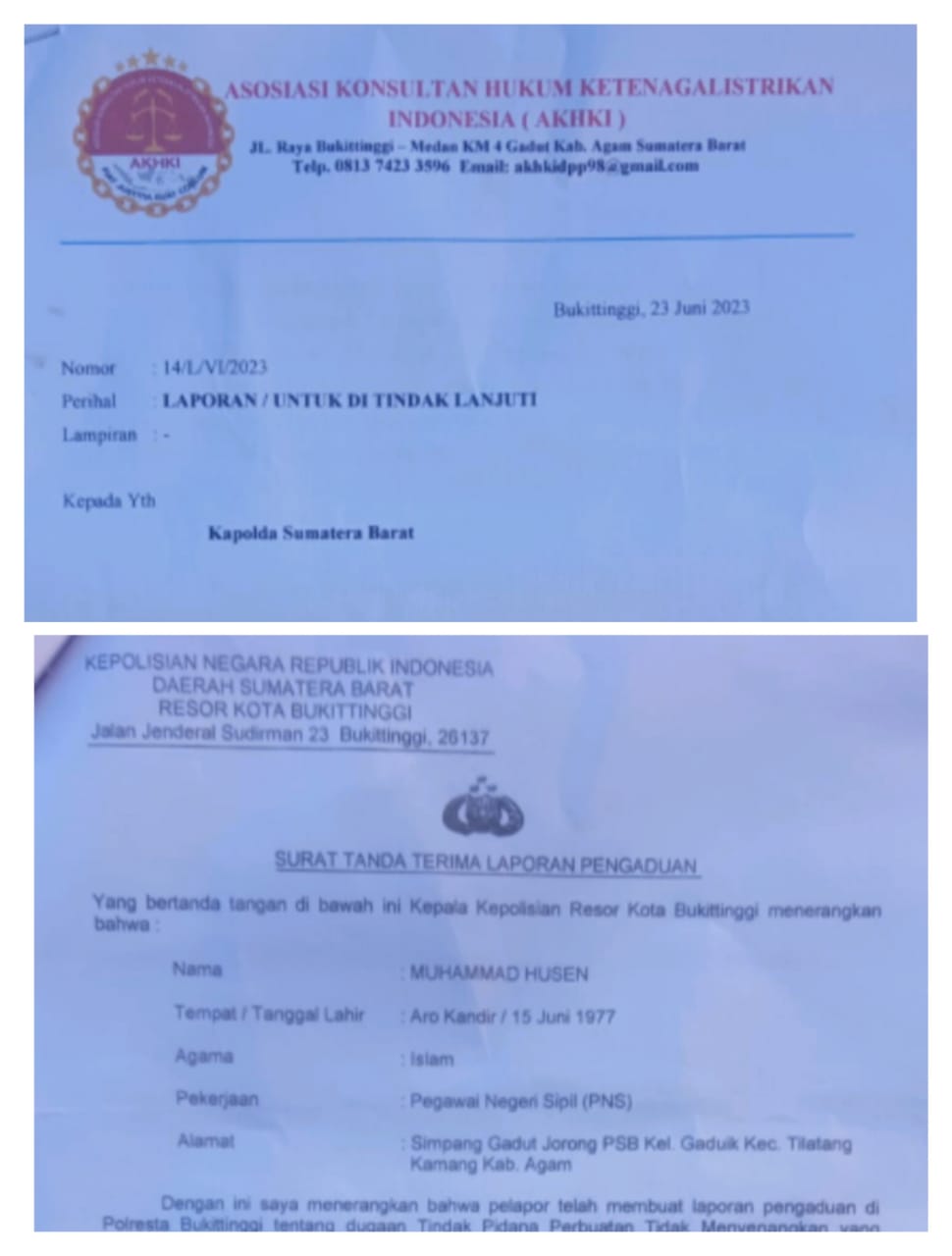 Ketua Umum Asosiasi Konsultan Hukum Ketenagalistrikan Indonesia(Ketum AKHKI) Hendra Utama, SH, menyurati Kapolda Sumatera Barat(26/06), bertindak berdasarkan surat kuasa khusus nomor : 0013/SK-AKHKI/V/2023 dari klienmya atau si pelapor bernama Muhammad Husein yang melaporkan dugaan pidana tentang perbuatan tidak menyenangkan dari si terlapor