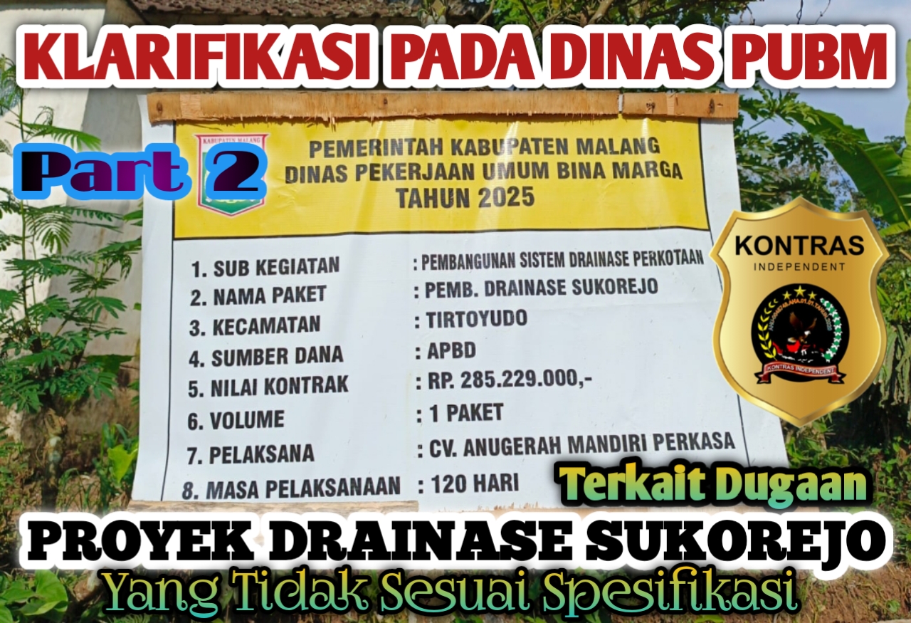 Klarifikasi Pada Dinas PUBM Kabupaten Malang, Terkait Dugaan Proyek Pembangunan Drainase Sukorejo Yang Tak Sesuai Spesifikasi & Teknis.