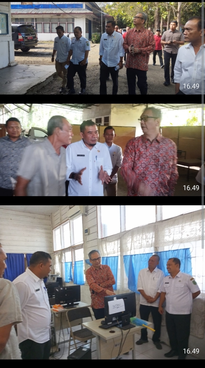 Keterangan gambar: PLT Disnaker Kabupaten Madina yang mendampingi Sihar PH Sitorus melihat kondisi gedung dan Pasilitas BLK Panyabungan.(BR)