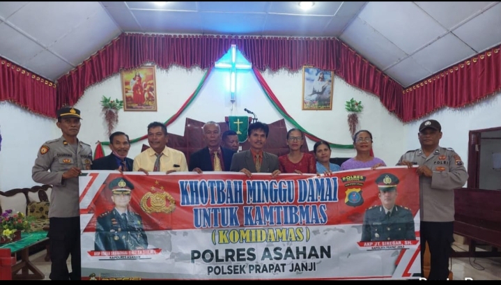www.kontrasindependent.com-Kabupaten Asahan, -Dalam memelihara Kamtibmas yang aman dan kondusif, Polsek Prapat Janji Polres Asahan melaksanakan Gerakan Khotbah Minggu Damai (Komidamas) di Gereja Oikumene Kebun Pulau Mandi Desa Buntu Pane Kecamatan Buntu Pane Kabupaten Asahan Minggu (19/03/2023).