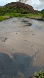 Disisi gunungan timbunan tandan / janjang sawit sisa pengolahan ini terlihat kolam kolam penampung limbah cair, limbah cair yang dapat memadat juga terbuka bebas dan limbah padat lainnya.
