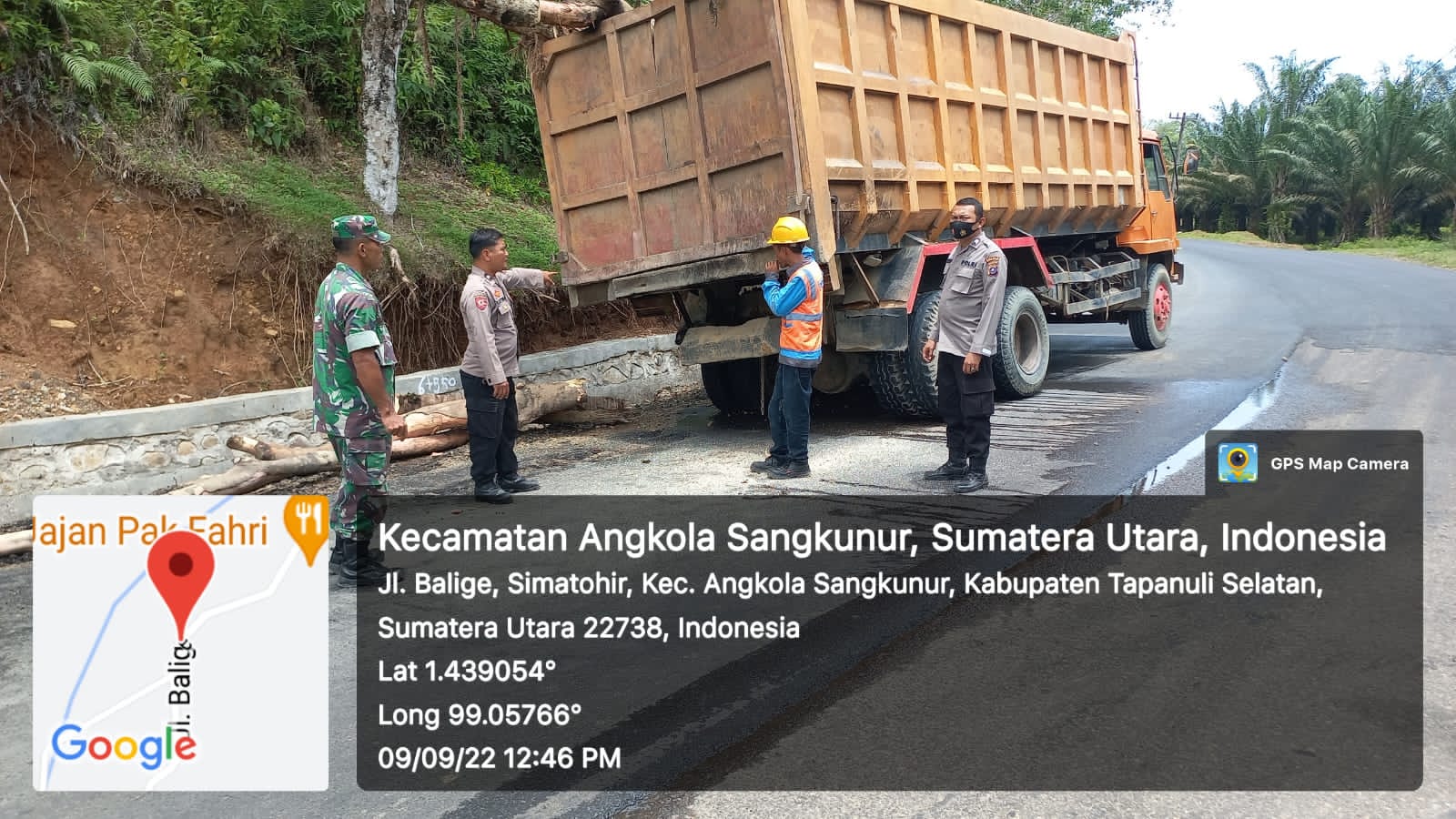 Peristiwa itu terjadi sekitar pukul 11.30 WIB. Dimana, 1 unit mobil Fuso dengan nomor polisi BA 8562 AU milik PT Rimbo Paraduan bermuatan kayu dari Tangkahan Pasir .