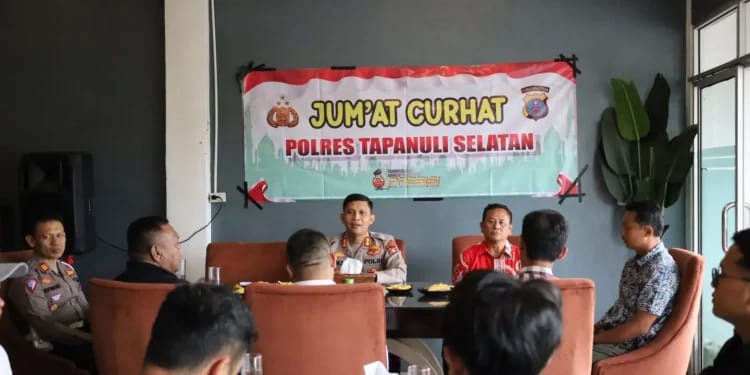 Hari ini kita Jum’at Curhat bersama pelaku ekonomi di Kabupaten Tapanuli Selatan, dasarnya kita berkeinginan mendengar keluhan para pelaku ekonomi ini sehingga akan berdampak pada peningkatan perekonomian,” jelas Kapolres Zamroni.