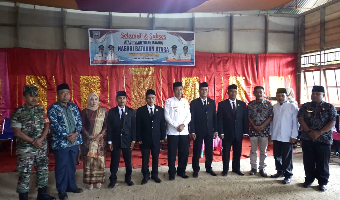 Wakil Bupati Pasaman Barat (Pasbar) Risnawanto melantik Lima Anggota Bamus Nagari Batahan Utara, pada Jumat (30/6) yang berlangsung di Gedung Pertemuan Jorong Sawah Mudik, Nagari Batahan Utara Kecamatan Ranah Batahan, Kabupaten Pasaman Barat.