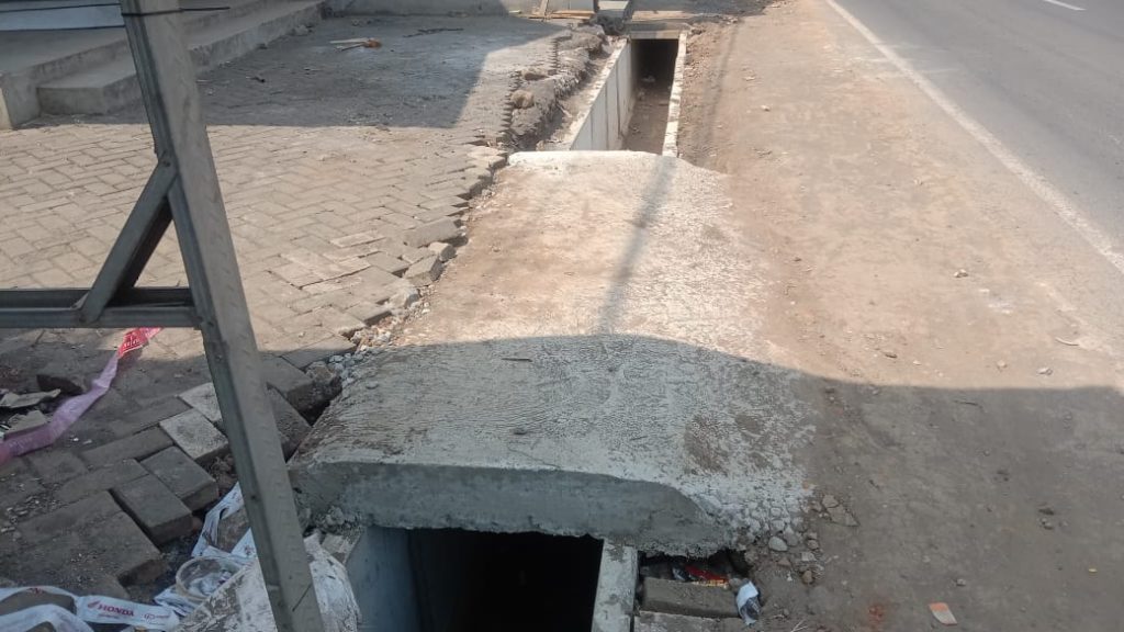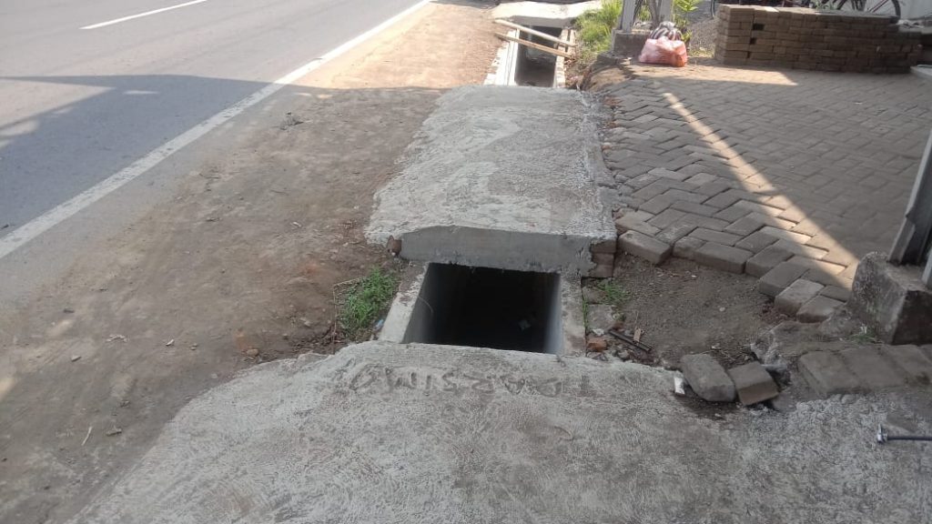 www.kontrasindependent.com Malang- Saluran Air Jalan Raya Kabupaten yang beralokasi di Desa Sukoraharjo Kepanjen setelah di Bangun kurang lebih berapa minggu ini saat ini sudah selesai oleh Dinas PU Bina Marga Kabupaten Malang.