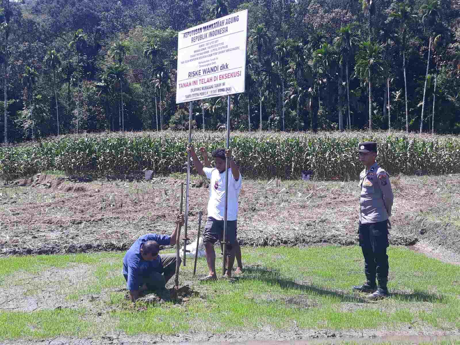 Setelah di eksekusi Tanah Lahan Sawah seluas 3.080.meter persegi tersebut sudah dikuasai Oleh Pemenang Perkara Riske Wandi Dkk.(Rspd)