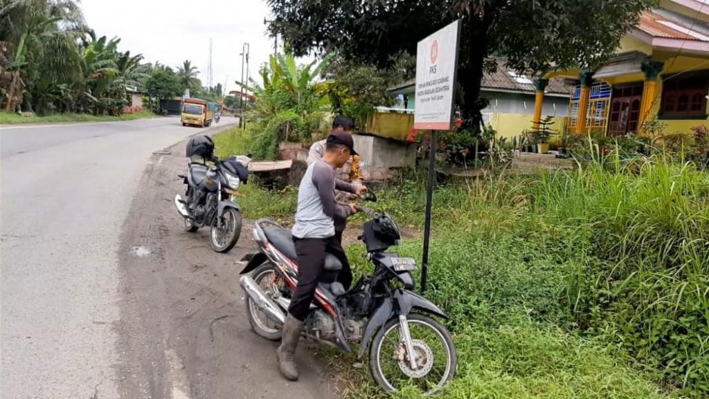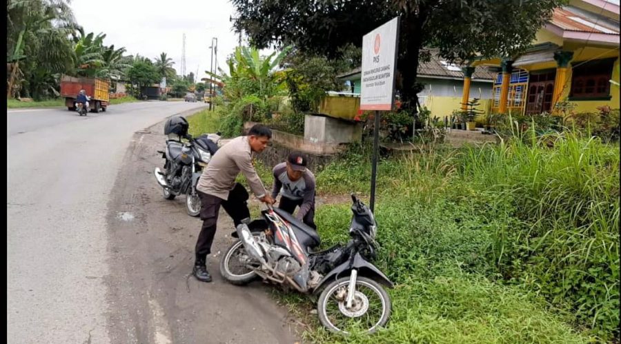 Www.kontrasindependent.com-25 Januari 2023-Kabupaten Asahan-Personil Bhabinkamtibmas Polsek Simpang Empat Polres Asahan membantu warga yang jatuh di Pinggir Jalan pada saat hendak berangkat ke Ladang Jalinsum Medan Rantau Parapat Dusun IV Desa Air Teluk Kiri Kecamatan Teluk Dalam Kabupaten Asahan Rabu (25/01/2023) sekira jam 09.00 Wib.
