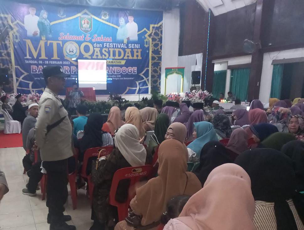 Www.kontrasindependent.com-07 Februari 2023-Kabupaten Asahan-Personil Polsek Bandar Pasir Mandoge melaksanakan Pengamanan Kegiatan Perlombaan dalam Rangka Pelaksanaan MTQ dan Festival Seni Qasidah Tingkat Kecamatan Sampai Tingkat Nasional Tanggal 6 s/d Tanggal 8 Pebruari 2023 di Wisma Kemuning PTPN IV Bandar Pasir Mandoge Dusun X Desa Bandar Pasir Mandoge Kecamatan Bandar Pasir Mandoge Kabupaten Asahan Senin (06/02/2023).