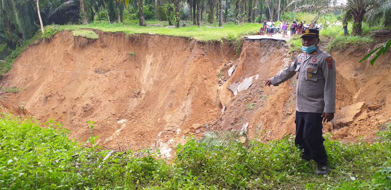 Polsek Bandar Pasir Mandoge Lakukan Pengamanan Jalan Longsor Di Desa Gonting Sidodadi