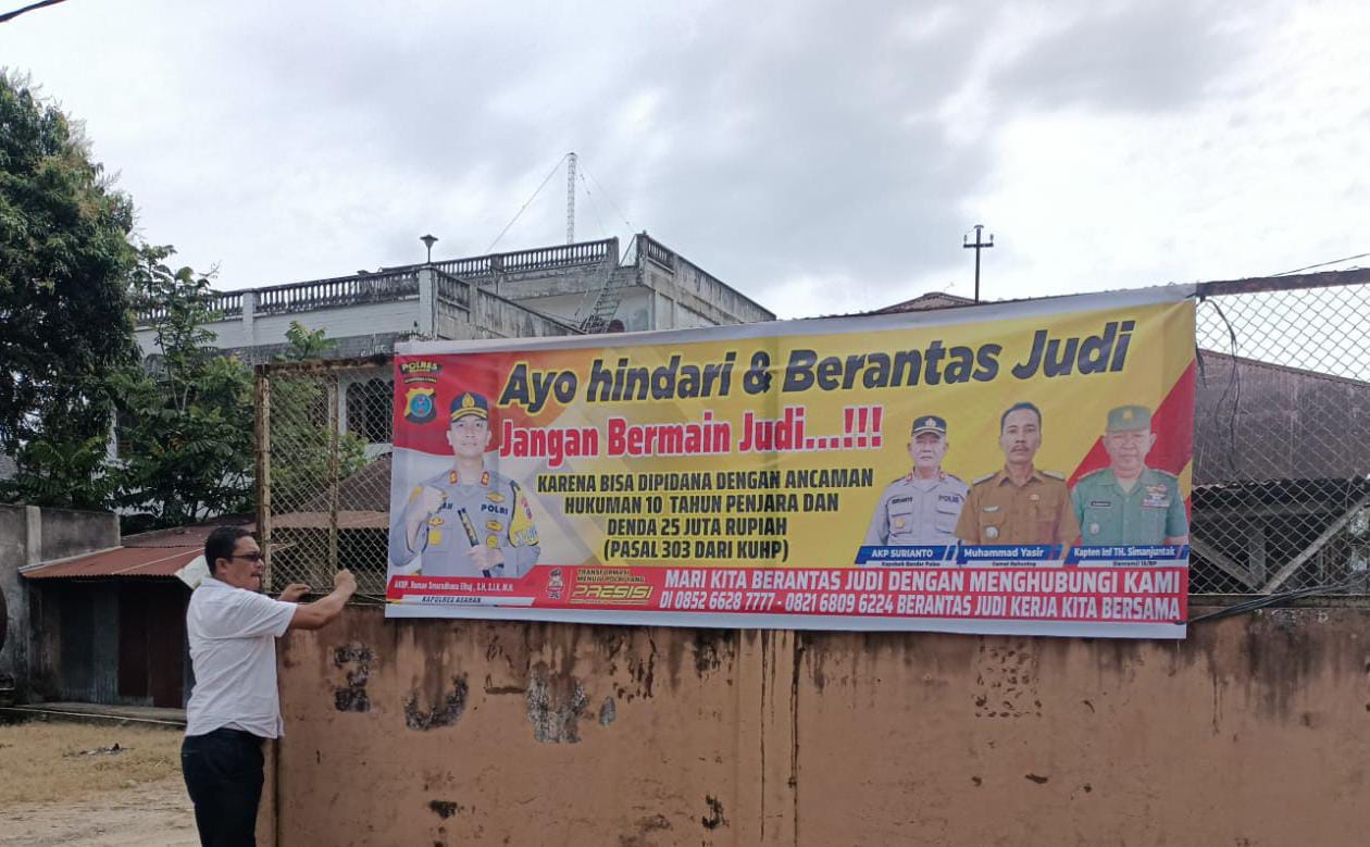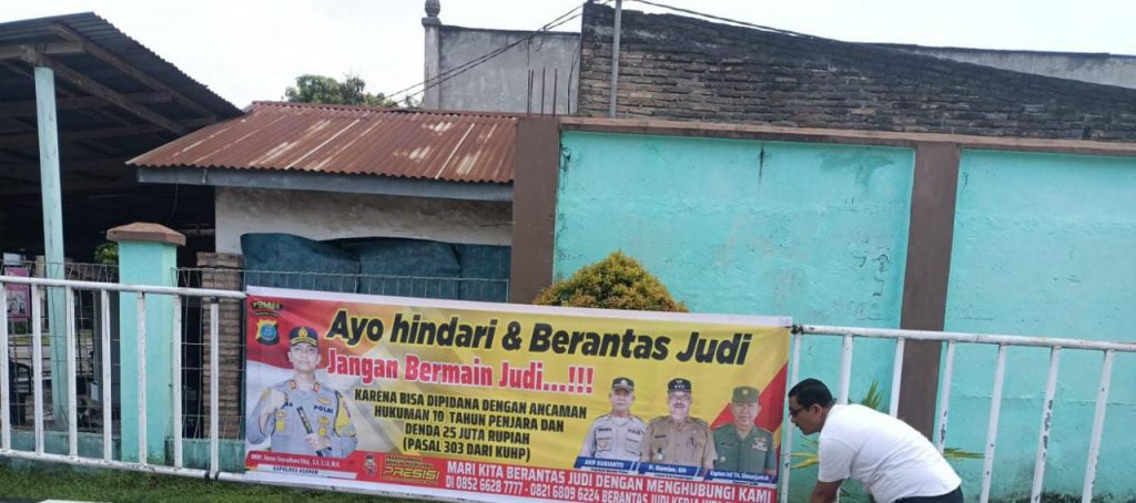 ” Untuk hari ini Bhabinkamtibmas Polsek Bandar Pulau melakukan pemasangan spanduk himbauan larangan permainan judi di Desa Aek Songsongan Kecamatan Aek Songsongaongan, Desa Gunung Melayu Kecamatan Rahuning Kecamatan Aek Songsongan, dan Desa Aek Tarum Kecamatan Bandar Pulau Kabupaten Asahan.