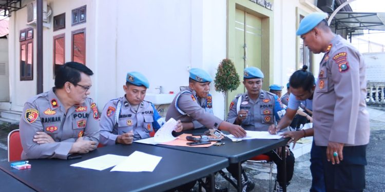 Tampak mengawasi jalannya pemeriksaan antara lain, Waka Polres Tapsel Kompol Rahman Takdir Harahap. Plh Kasiwas AKP Sumanto Naibaho. Dan, Paur Bekpal Bag Log Polres Tapsel Ipda S Toto M.(BR)
