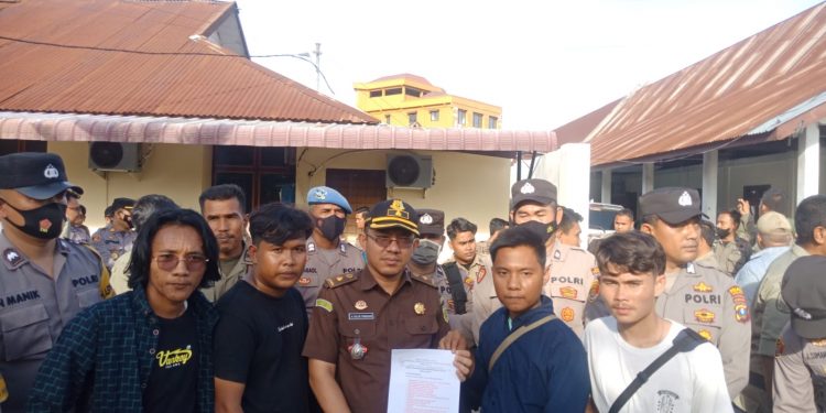 Karena tidak mendapatkan jawaban, pengunjuk rasa melanjutkan orasinya ke kantor Kejaksaan Negeri Paluta, kemudian massa aksi langsung disambut oleh Kasi Intel Kejari Paluta Hendrik Dolok Tambunan,SH yang menjawab aspirasi mereka.