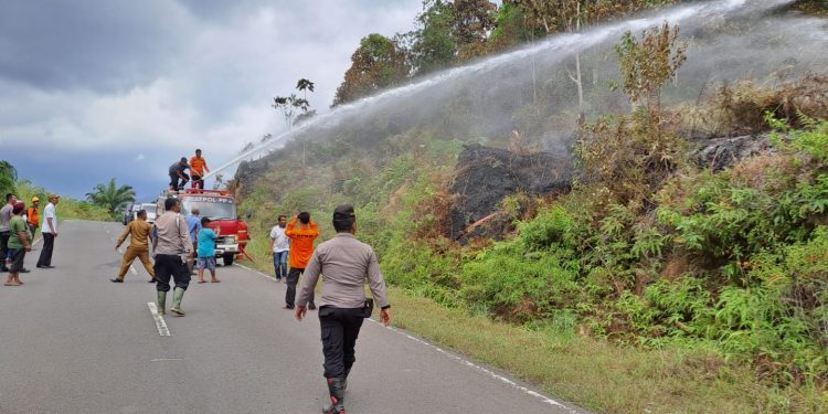 Tentunya upaya kita secepatnya untuk memadamkan api yang membakar lahan tersebut dengan menurunkan mobil pemadam kebakaran dan dibantu baru personel,” lanjutnya.
